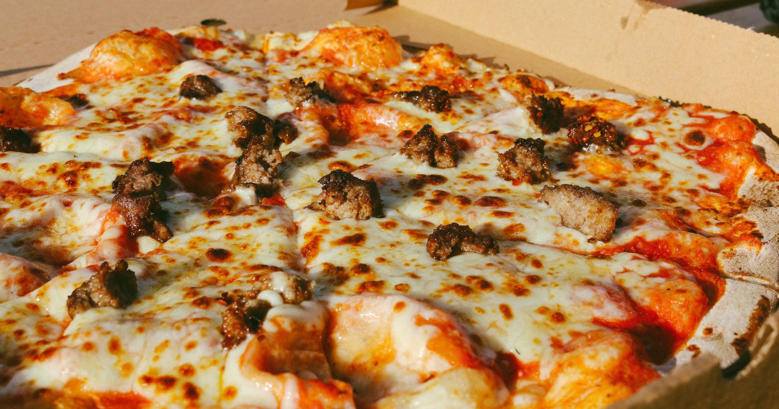 Sauce tomate, mozzarella, cheddar viande hâchée de bœuf, sauce burger, tomates cerises